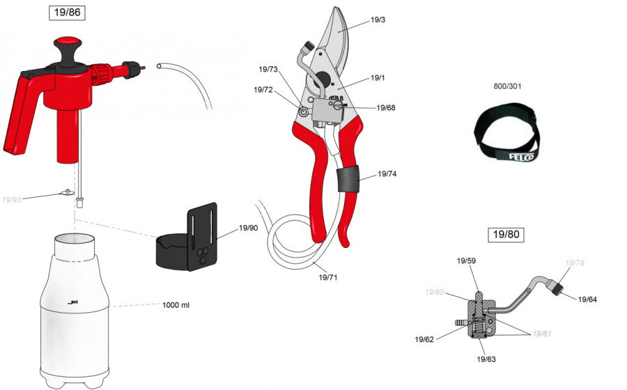 FELCO 19 - Професионална лозарска ножица със спрей система за агро защита