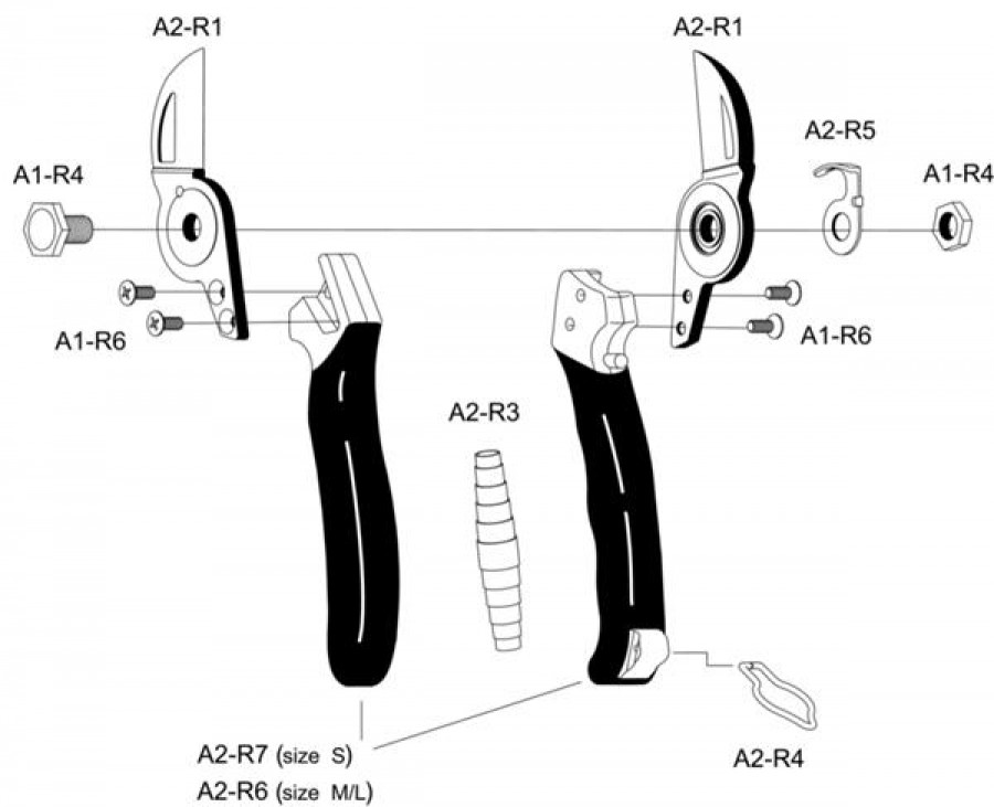 Дръжките са от подсилена алуминиева сплав, осигуряваща лекота и ергономичност и са с покритие против приплъзване. Удобно заключване с прибиране към дръжката по време на работа. Ножиците са напълно разглобяеми и с подменящи се части.