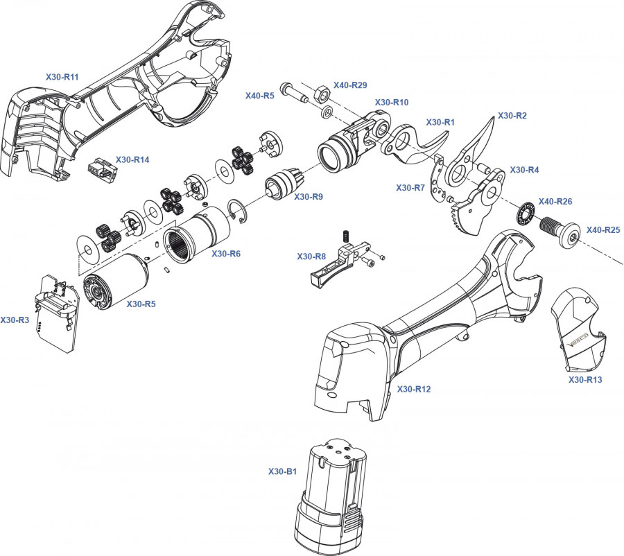 VESCO X30.1 - Комплект акумулаторна роботизирана безкабелна ножица с 2 батерии