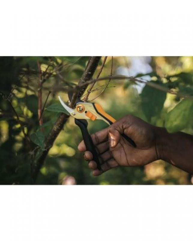 Градинската ножица с разминаващи се остриета FISKARS Solid metal P331 е лека и удобна за рязане на стъбла и клони. Напълно закаленото, прецизно шлифовано стоманено острие остава остро за по-дълго време. Покритието на острието с ниско триене е устойчиво на ръжда и подобрява производителността, което води до по-гладки порязвания и по-малко залепвания. Ножицата притежава здрава стоманена дръжка с SoftGrip ™ покритие за допълнителен комфорт. Лесно отварящото се плъзгащо заключване предпазва острието по време на транспортиране и съхранение.